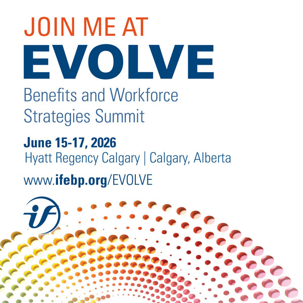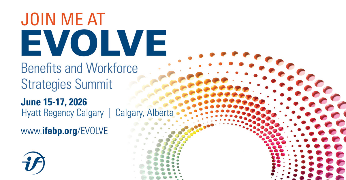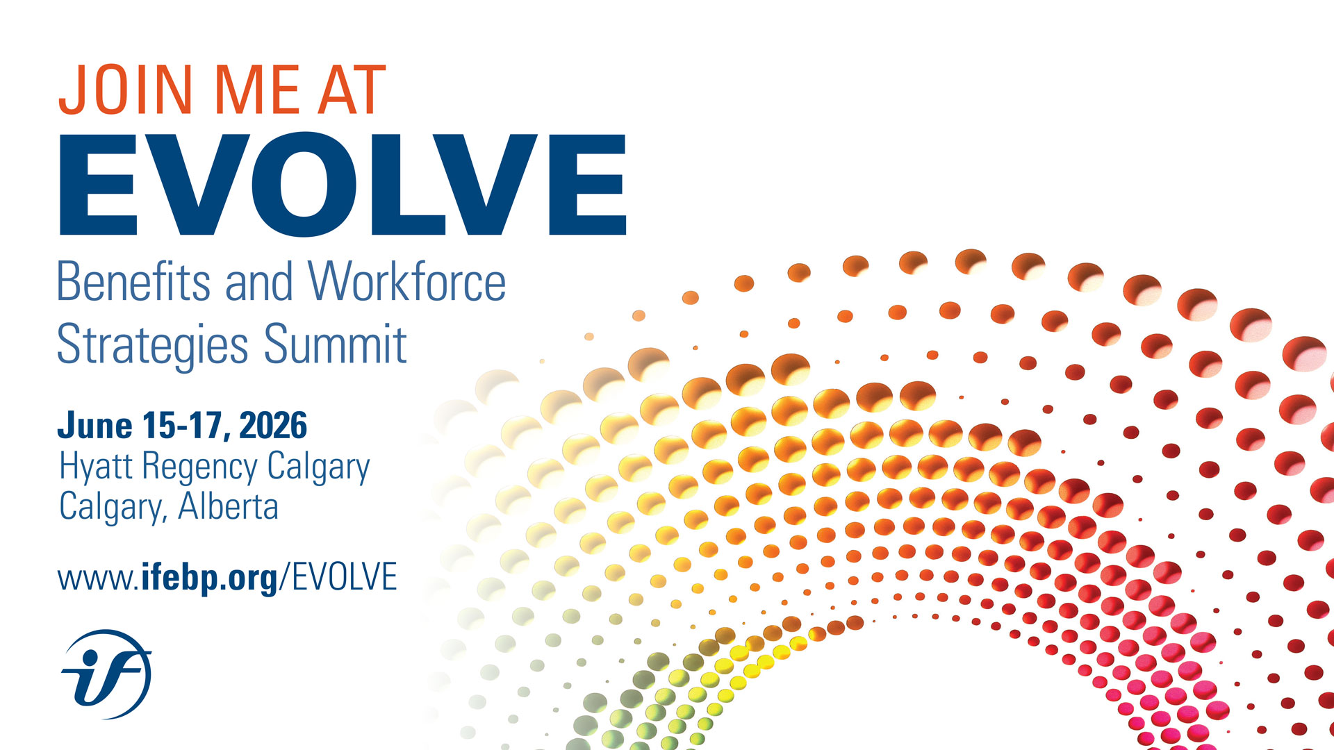 EVOLVE: Benefits and Workforce Strategies Summit—an innovative conference for Canadian HR, pensions and benefits leaders, covering the latest trends and strategies to attract, retain and support your workforce. Connect with your peers June 15-17, 2026 in Calgary. Register by May 4 and save! www.ifebp.org/EVOLVE